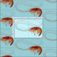 Esta linda lagosta vermelha está sobre um fundo azul claro.
