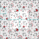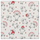 Adorável tecido branco, com filhotes de focas brancas e bonitinhos vestindo chapéus e cachecóis de inverno, cercados de corações vermelhos