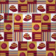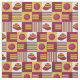 Jogadores de críquete e fãs de críquete vão adorar este tecido de cor burguesa e biscoita, impresso com bastões e bolas de críquete, bonés e listras antigos