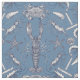 Damasco de crustáceos, originalmente desenhado a tinta. Possui caranguejo comestível, lagosta azul europeia, camarão-comum, camarão-marrom, caranguejo-comum, carapaça de moluscos, carapaça de barbear e peixe-estrela.