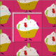 Tecido com um design de sorriso do cupcake (a cor do fundo é variável)