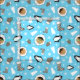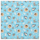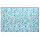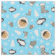 Adorável tecido azul de inverno com um padrão fofo de crianças do Alasca, pinguins, mitenes e abeto
