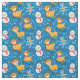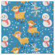 Uma animação divertida, Reindeer e Snowman, Tecido de Natal. Uma design divertida com homens de neve vestindo lenços vermelhos e renas dançantes com fundo azul de neve. Um design excelente para seus projetos de colagem e artesanato ou decoração doméstica.