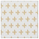Tecido dourado da flor de lis com as flores no fundo branco.