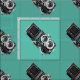 A cerceta e a novidade cinzenta da câmera do vintage imprimem o tecido.