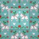 Tecido nórdico de Natal com um padrão de cavalos Dala suecos em branco com detalhes em vermelho, azul e verde rodeados de flores e corações.