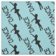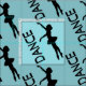 Um design tecido com um padrão repetitivo de silhueta de uma bailarina em um fundo bonito. Esta elegante dançarina de balé está em pé nos dedos, apontada com os braços esticados graciosamente. A palavra "DANCE" escrita ao lado desta dançarina elegante.