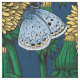 Um padrão contínuo vetorial com dentes-de-leão e borboletas azuis comuns.