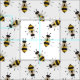 Um padrão de abelhas rústicas amarelas e pretas listradas, ilustradas, enxergam através deste tecido.