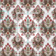 o tecido de algodão imprimiu com uma cor damasco de repetição em um tema, em um vermelho, em um creme, em um marrom, e em um preto dos macacos da peúga. Apropriado para lotes dos artesanatos, talvez cortinas bonitos ou travesseiros em uma sala ou na sala de jogos de criança.
