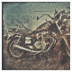 A imagem criativa editada da motocicleta com uma sensação afligida tem um fundo da beira azul e preta desvanecida. Serido para estofar ou crafting.