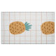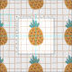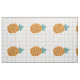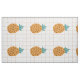Ilustração de desenho animado de abacaxi e uma grade castanho-claro e branca em fundo decoram este tecido estofado de abacaxi divertido. O impressão é grande e adequado para uso em vários projetos de decoração, arte e artesanatos residenciais.