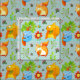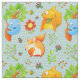Uma ilustração original que eu pintei pela primeira vez em aquarela e depois digitalmente enriquecida, de deliciosas criaturas florestais. um urso azul giro sobre uma árvore, um esquilo doce segurando uma bolota e uma raposa enrolada divertida, entre cogumelos, uma flor e galhos, e colocado sobre um fundo de listras aqua zigzag pálidas. Uma encantadora floresta, perfeita para um quarto para crianças ou para uma festa de aniversário, um rapaz ou uma rapariga.