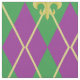 Um teste padrão do harlequin de verde e do roxo é transformado em um argyle brincalhão com uma folha de prova de esboços e de flor de lis do diamante do ouro, criando um divertimento e um teste padrão colorido perfeitos para toda a celebração influenciada Nova Orleães do carnaval.