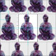 Buddha roxo bonito com exposição dobro da flor de cerejeira imprimiu no tecido. Um de um tipo!