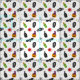 Um tecido colorido tem vela, pedra gravíssima, abóbora, fantasma, globo ocular, etc. sobre um fundo branco. Ideal para festas, fantasias, roupa, decoração caseira.