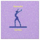 Lindo fundo brilhante púrpura com uma silhueta de ginasta azul no feixe de balanço, diz a ginástica em fonte amarela acima do design e abaixo você pode personalizar com o nome de sua escolha ou pode escolher deixar a caixa de personalização vazio se você não quiser nome.