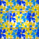 Tecido de Flores Amarelas e Azuis Modernas de Aqua