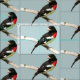 Esse design tecido apresenta o macho de Grosbeak, um pássaro em greve com um rosa brilhante seio contrastado por penas pretas e brancas e um forte bico achatado. Ele é um passarinho com uma melodia maravilhosa. A fêmea é marrom e branca. Eles se reproduzem na América do Norte, legal e temperada, migrando para a América tropical no inverno. Ele é colocado sobre um fundo azul pálido. Você pode personalizar facilmente a cor de fundo para se adequar ao seu projeto especial.