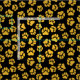 tecido de impressão na moda preto e dourado. A impressão deste material é feita de patas amarelas ouros com aspecto rico espalhadas em um padrão fofo. Amantes de cães que também apreciam artesanatos e costura podem encontrar uma variedade de usos para isso em fazeres de seus projetos criativos.