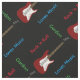 Tecido Elegante de Impressão de Violão. Com uma cor preta de fundo você pode mudar. Da etiqueta personalizada até o que você quiser. Com o texto em três cores a editar como desejar.