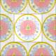 Padrão de tecido inspirado nos padrões florais mediterrânicos, criados em 1993 para um design de padrão quina tabletop, estas medalhões florais florais florais estão centradas umas nas outras - arte de Kristie Hubler, padrão chamado "Paixão Claro", para uma placa - cores rosa, azul, creme, amarelo, ouro