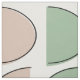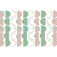 Médio-século Moderno Meia Lua Tecido em verde-claro, creme-claro e rosas claro em fundo branco.