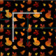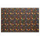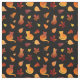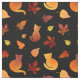 Um padrão de gengibres de silhueta e folhas de outono em laranja queimado, amarelo e vermelho, sobre fundo preto. Um design excelente para uma mãe de gato que adora costurar.