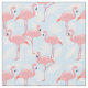 Tecido de padrão de flamingos rosa. Flamingos com palmeiras brancas tropicais sobre fundo azul são perfeitos para qualquer projeto de artesanato.