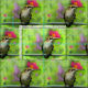 Este tecido animal apresenta um padrão repetido de um beija-flor jovem. Este adorável pássaro está sentado num bar de metal, pronto para mergulhar no néctar das flores que o rodeiam. O fundo é uma paleta suave e adorável de rosa, vermelho, dourado, amarelo e verde.