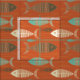 Utilizar este tecido de peixes de vintagem vermelha kitsch para uma grande variedade de projetos de costura. O padrão apresenta um fundo vermelho com peixes do esqueleto marrom, turquesa e amarelo que natação com a corrente.