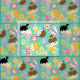Pequeno tecido Fada Ballerinas, um excelente design bonito e divertido para meninas que amam o balé, dançam, flores e borboletas! Possui bailarinas com cabelo castanho, preto e louro vestindo tutus e asas de fada, coroas, flores, borboletas e varas mágicas em um fundo azul-aqua.
