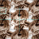 Coruja-de-água-colorida, coruja, cara-coruja, tecido padronizado em tons castanhos mutados. Pintura a aquarela original por Sarah Trett. www.sarahtrett.com