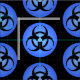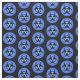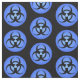 Símbolo de advertência de perigo biológico tecido em preto e azul. Escolha entre vários tipos de tecidos em fibras naturais ou sintéticas.
