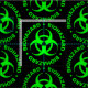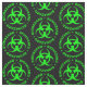 Padrão do símbolo de aviso de perigo biológico tecido a preto com símbolos de risco biológico verde brilhante assinalados com um círculo de 'Risco biológico'. Escolha entre vários tipos de tecidos em fibras naturais e sintéticas. O padrão está desbloqueado, isso significa que você pode redimensioná-lo se precisar de tecidos com padrões mini para modelos em escala, projetos de arte, roupas de boneca, etc.