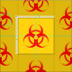 tecido do padrão do símbolo de aviso de perigo biológico em vermelho e amarelo. Escolha de vários tipos de tecidos com fibras naturais ou sintéticas. O padrão está desbloqueado, isso significa que você pode redimensioná-lo se precisar de mini impressão padrões para modelos em escala, projetos de arte, roupas de boneca, etc.