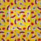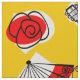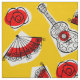 Design de Whimsical desenhado em estilo retrô, com lembranças de um feriado espanhol; uma guitarra de ferro em formas brutas, um fã de legado e uma rosa vermelha. Um design personalizável em preto, branco, vermelho e ouro amarelo para você personalizar com seu próprio texto, imagens e ideias. Uma imagem de arte digital original.