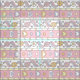 Corações brancos bonito e retornos de flores desenhando manualmente gráficos em cinzas com tons de amarelo, roxo, rosa sobre fundo branco. A cor de fundo pode ser alterada para sua própria escolha de cor, se necessário. Ideal para projetos de costura personalizados corresponde a outros meus pequenos monogramas de eden e designs de flores. © Desenho original e design por Sarah Trett. www.sarahtrett.com para www.mylittleeden.com