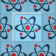 Tecido de Design de Átomos Vermelhos, com cor de fundo personalizável.