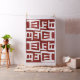 Design tribal contemporâneo para cobrir escorregadios, estofos, travesseiros e camas. Padrão de marfim em fundo vermelho profundo por Virginia Vivier, Vagabond Folk Art.
