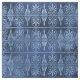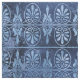 Este Deco de Arte e o design de inspiração grega têm um fundo azul angustiante com ventiladores azuis-claros e ornamentados de rolagem.