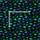 Dinossauros pintados com uma mão minúscula, de todos os tipos, em verde esmeralda, aqua, azul cobalto, turquesa, toucinho, menta e roxo sobre fundo preto.