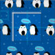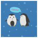 Design do tema do inverno de pinguins bonitos no fundo dos flocos de neve. O pinguim fêmea com chicotes longos está dizendo "eu te amo!" ao pinguim masculino carnudo.