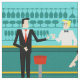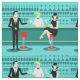 Cada hora é feliz com este Tecido do coquetel Retro. O design moderno do meio século apresenta um vibrante estilo, minimalista, de 1960 desenho de um bar de cocktail clássico. Contra o pano de fundo de uma parede aqua, podemos ver filas de óculos de bebida. Pelo menos podemos ver os teais silhuetas de óculos de bebida. A julgar pelas formas do material, este bar está bem equipado para molhar o assobio, seja qual for a sua preferência pela bebida. Um barman mais competente e personável é manejar o bar com sotaques amarelos. O jovem barman está vestindo uma camisa branca e primitiva com gravata arco preta. Sua boa aparência, cabelo louro e óculos de hipster pretos nos dão todas as razões para acreditar que ele passa seus dias como um ator em luta ou um super-herói. Por um lado, o bonito mixologista está entregando um martini a um cliente do lado oposto do bar. O cliente que espera é um cavalheiro de ombros largos com um terno preto e gravata vermelha. Ele é o tipo de sujeito que é descrito como alto, escuro e bonito mesmo quando ainda é horas até a hora de fechar. Parece que há um banco de bares vermelho e cromo com o nome do Sr. Debonair. No entanto, para não ser presunçoso, ele pergunta, "Desculpe-me. Este assento está ocupado?" Ele está perguntando à garota cabeleira no banco de bares vizinho. Ela é do tipo "garota ao lado", se você vive ao lado de uma beleza perfeita com uma figura que não desiste. Ela está vestindo um vestido preto e segurando um martini em uma mão. Ela espera que ela e o cavalheiro que se aproxima tenham mais em comum que a sua preferência pela bebida e a escolha da cor da roupa. Parece que esta noite ficou interessante. Saúde para você!