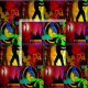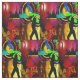 Cena do clube de dança com silhuetas dançarinas e a festa de palavra espalhada em volta da foto impressa no tecido.