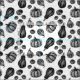 Tecido com as abóboras preto e branco que stippling a ilustração.