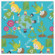 Caçoa o tecido da consciência do Dia da Terra, caracteriza um menino, menina, miúdos que guardaram as mãos em torno da terra, flores, árvores recentemente plantadas, sacola reusável, e o texto que lê reduz o reciclar todo reusar em um fundo brilhante dos azul-céu.