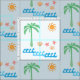 O tecido do tema do verão projetou com palma, seashells, onda e sol. Quente e summery. Aperfeiçoe para o verão!