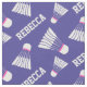 Badminton Racquet sport repete o padrão personalizado de 'shuttlecock' tecido esportivo. Encanamentos brancos com uma banda cor-de-rosa em uma cor azul roxa de fundo que pode ser alterada se necessário. Ideal para fãs de badminton. Personalize com sua própria escolha de nome, lê Rebecca. Arte e projetada por Sarah Trett.