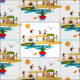 Um grupo de kayakers que partying na praia é caracterizado neste tecido colorido. Inspirará uma variedade infinita de projetos para lembrar um dos dias de verão felizes passados na praia ou nos tempos que cavorting nas ilhas.